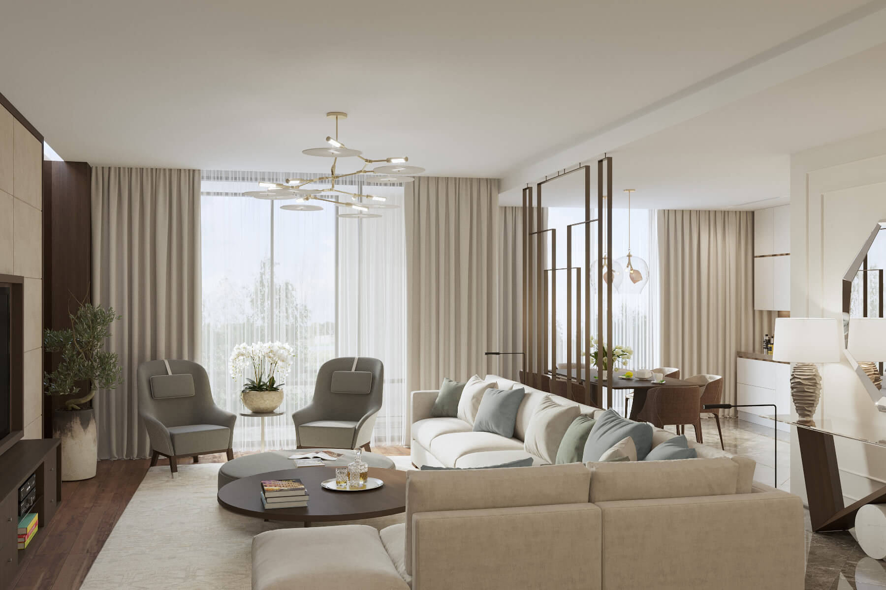 В отделке входных групп и холлов ЖК «Воробьёвы горы» использовали светлый натуральный камень, метал, стекло и ценные породы дерева. В лаунж-зоне можно провести деловую встречу или выпить кофе